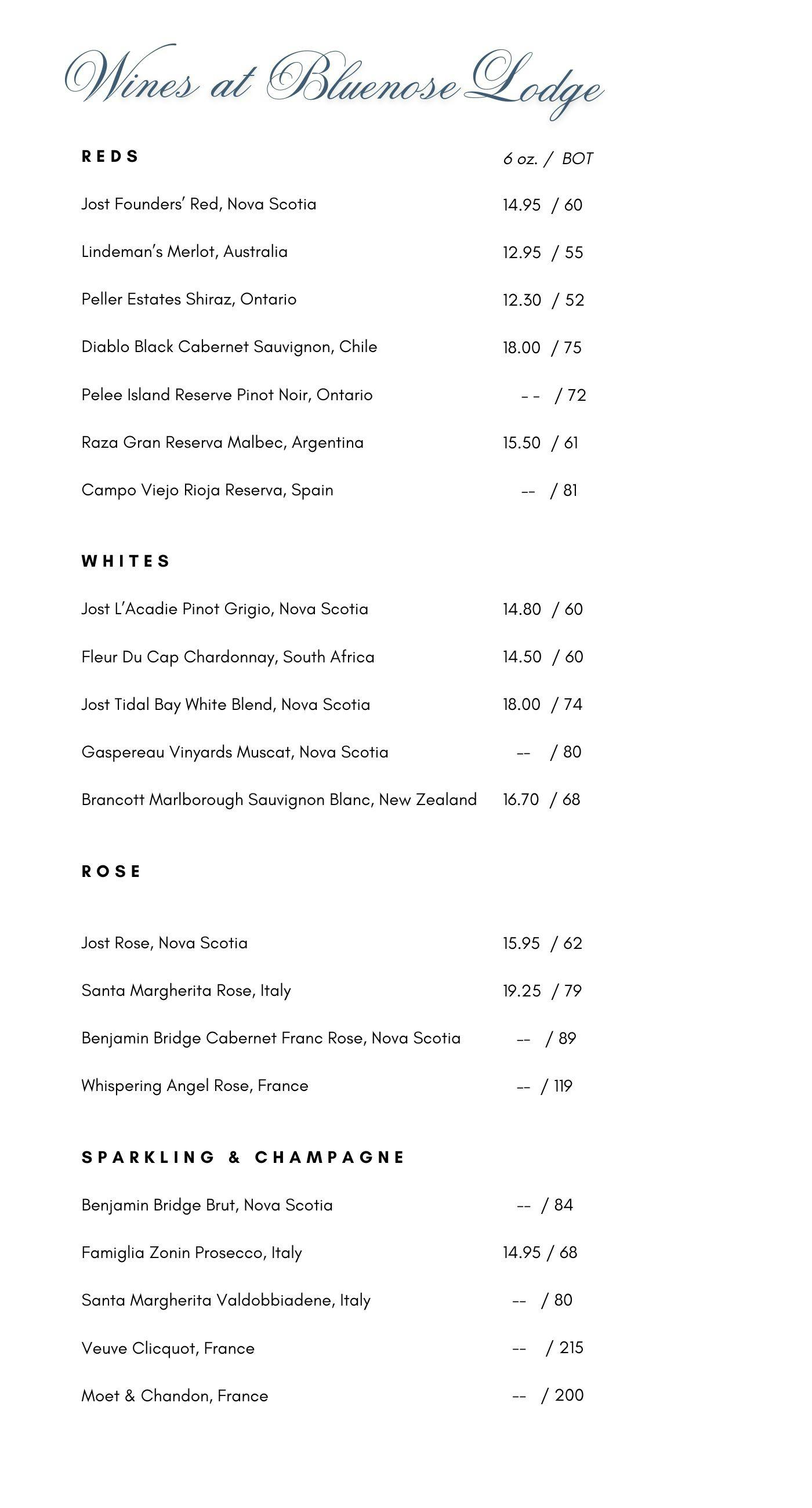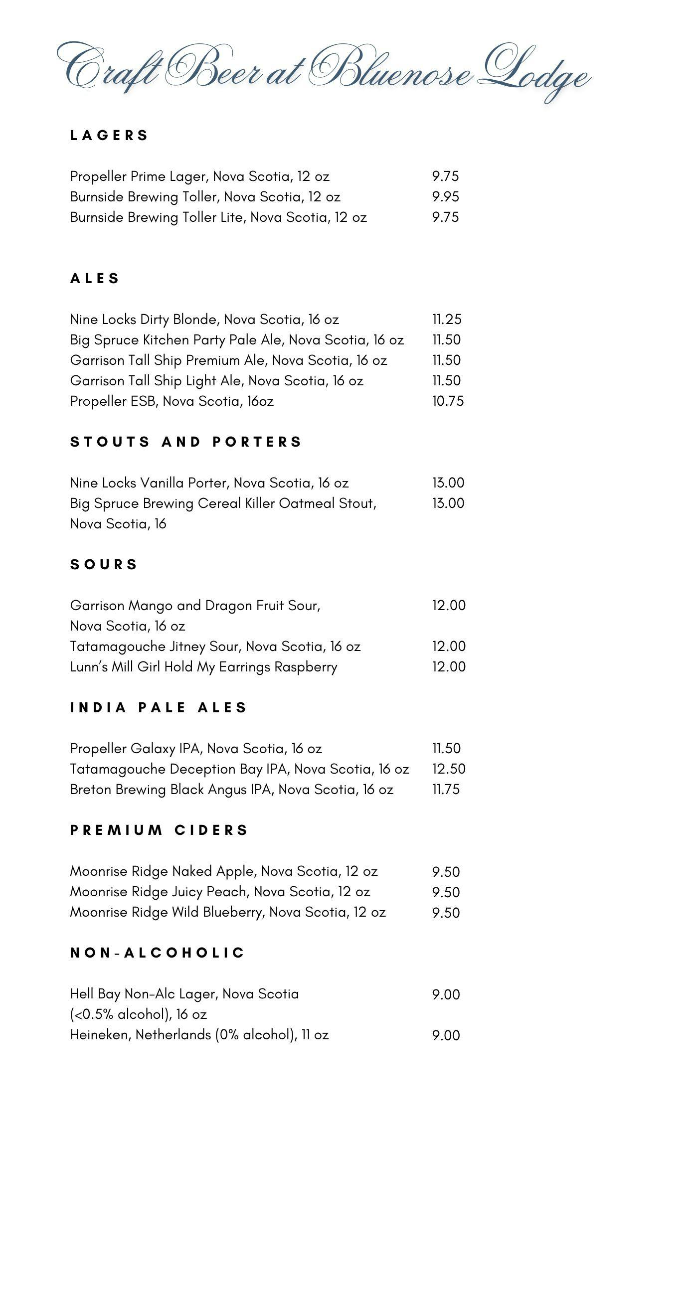 Wine, Craft Beer, & Cocktail Menu