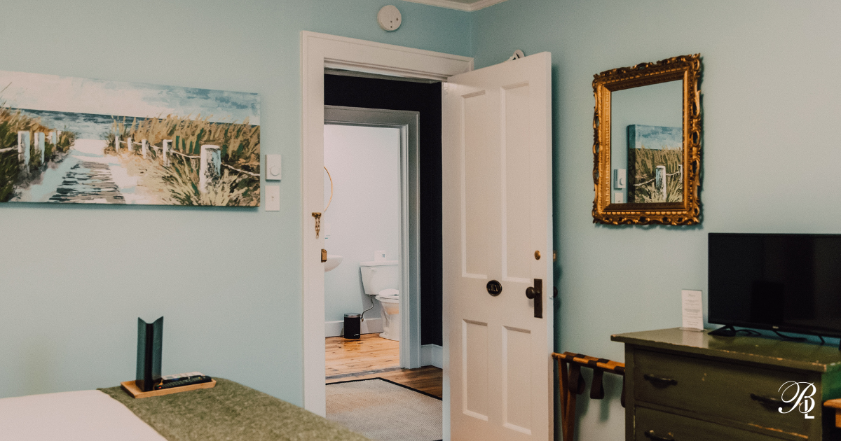 Standard Two Double Bed Room with private three piece bathroom across the hall. This corner room is located on the second floor of our adjacent historic Carriage House. Room highlights include television with multiple streaming services, air conditioning, free wifi and luxurious bath amenities.